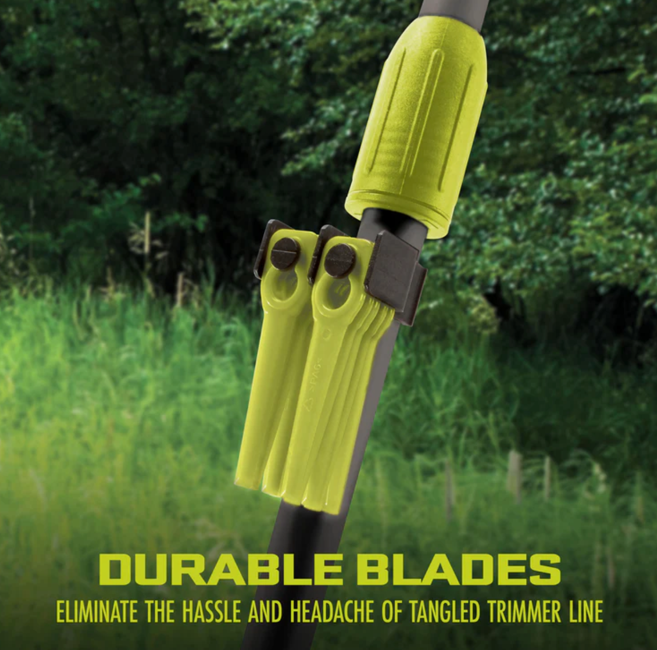 - STRINGLESS TRIMMING: Grass trimmer uses durable PA66 nylon blades for easy lawn edging—includes 11 replacement blades