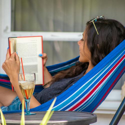 Bliss Hammocks BH-400W5CA is a versatile full size Brazilian style hammock. Made of a woven blend of breathable polyester and eco-friendly recycled cotton fabrics, it is the most comfortable gathered-end hammock, made to provide more comfort in commonly strained areas like the head, knees, and ankles. The loop ends are reinforced with steel and can be used both indoor and outdoor with great durability. Included hanging ropes make it easy to hang between trees or between other similarly sturdy. Colorful stripe design gives this hammock a traditional yet modern look with ropes that are made with strong eco-friendly recycled materials.