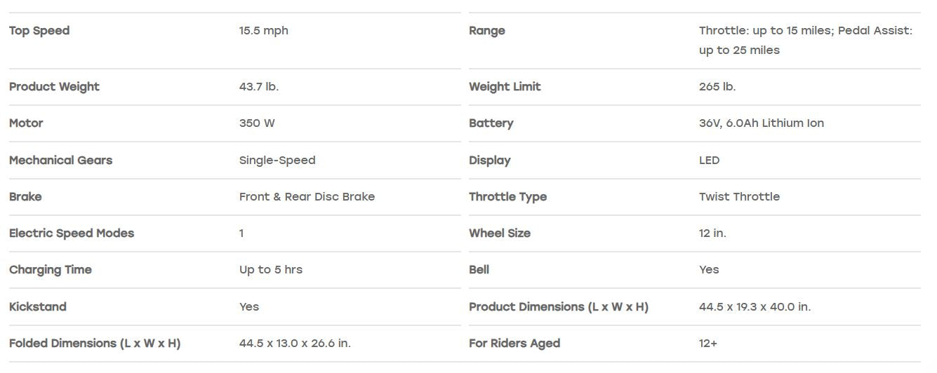 - Powered by a 350W hub motor, it can hit speeds up to 15.5mph