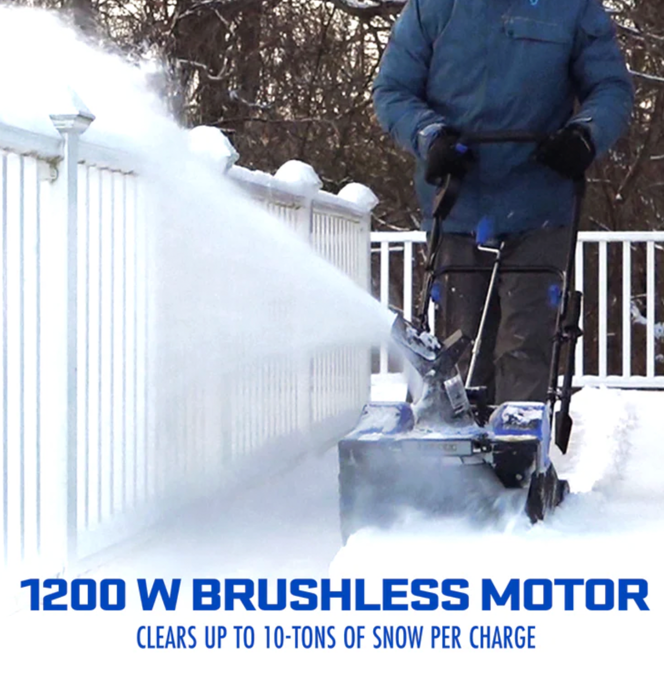 - ULTRA POWERFUL: 1200 W brushless motor clears up to 10 tons of snow per charge - that's the weight of about 5 pickup trucks!