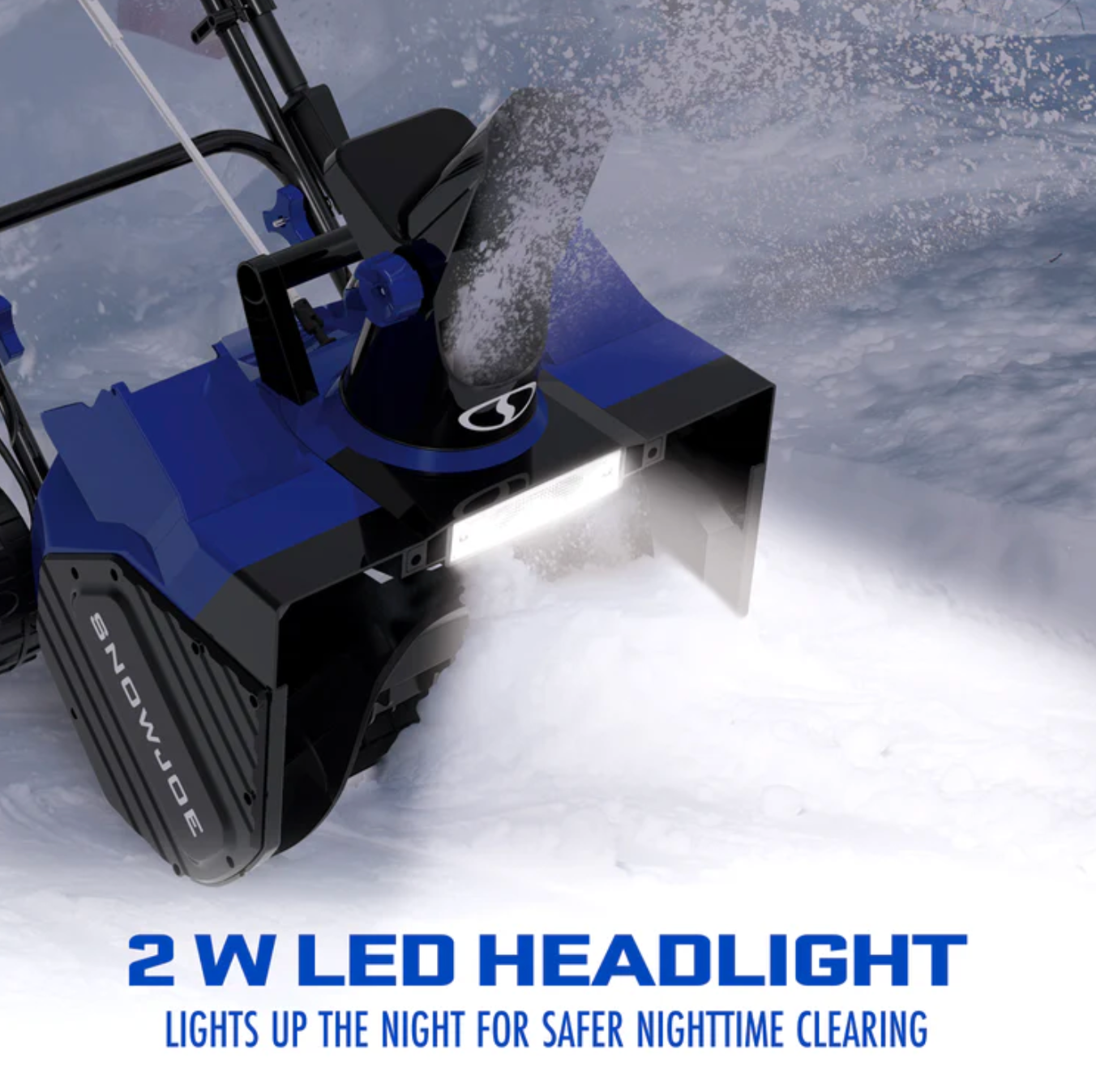 Only IONMAX delivers the breakthrough power and performance of gas with cutting-edge cordless convenience to blast past the limits of an extension cord, and go anywhere power is at a premium. Snow Joe clears an 18-inch wide by 10-inch deep path in a single pass. The powerful 1200-Watt brushless motor plows through up to 10 tons of snow per charge - while the integrated scraper bar at the base of the unit clears right to the ground without damaging your deck, driveway, or pavement. Put the powder precisely where you want it: Snow Joe's adjustable chute control rotates 180 degrees to throw snow up to 20 feet away in any direction! And after dark, the integrated 2-Watt LED headlight lights the way for safer nighttime clearing to keep on throwing when it just wonât stop snowing! When winter strikes, fight back with 48-Volts of snow-shredding power from Snow Joe.