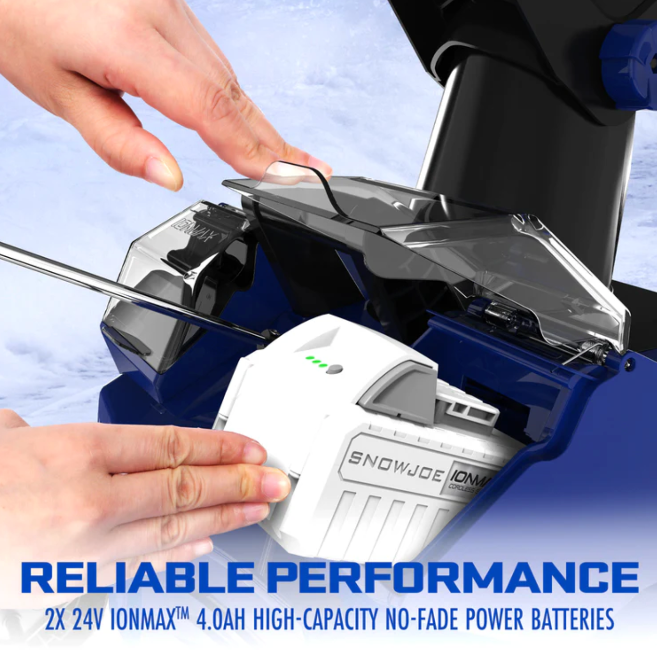 Introducing the latest revolution in snow-clearing technology: IONMAX 48-Volt 18-Inch Cordless Snow Blower from Snow Joe. Powered by Snow Joeâs exclusive IONMAX 24-Volt lithium-ion battery system, the two included rechargeable 4.0 Ah batteries, which are compatible with over 150+ Snow Joe and Sun Joe tools.